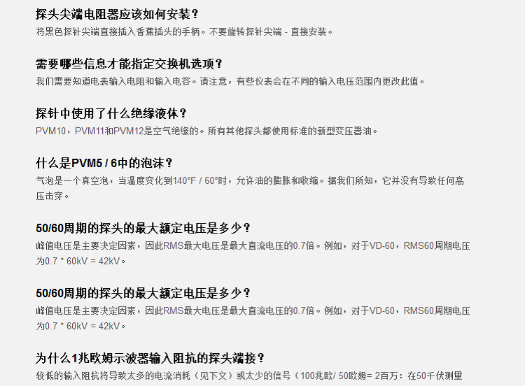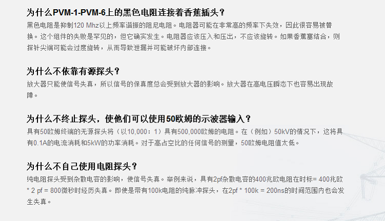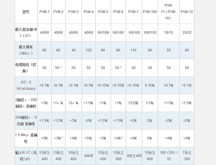 北*星制造兩種主要類型的高壓探頭– 專為便攜性和寬帶寬設計的PVM系列,以及專為長壽命和高精度而設計的獨立式VD系列。兩種類型的探頭均可與1兆歐輸入示波器(標準)一起使用,或與各種輸入阻抗的儀表一起使用(訂購時指定儀表類型)。探針也可用于OEM應用的“裸露”版本。